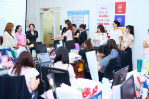 Ngay từ sáng sớm, không khí tại văn phòng HTP đã trở nên rộn ràng và ấm áp hơn bao giờ hết. Khu vực check-in với backdrop “Nàng HTP – Bản Lĩnh Vững Vàng , Dịu Dàng Tỏa Sáng” được trang trí tinh tế, trở thành điểm hẹn để mọi người lưu lại những khoảnh khắc tươi đẹp, tràn đầy năng lượng tích cực.